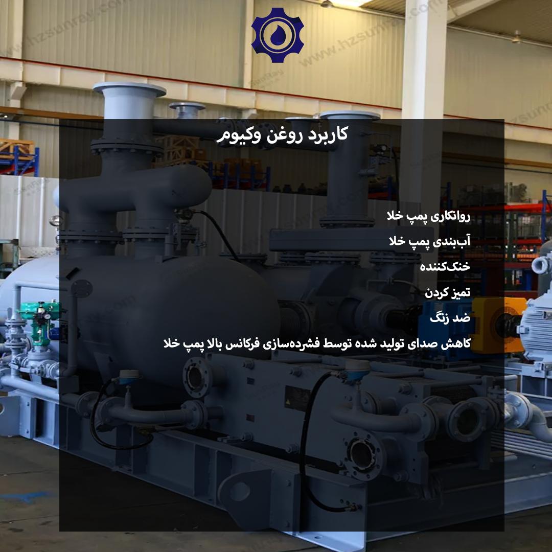 روغن وکیوم عمدتاً برای روانکاری در پمپ‌های خلاء استفاده می‌شود. لایه روغن تشکیل شده بین محفظه پمپ، پره‌های چرخان و بدنه پمپ از تماس مستقیم جلوگیری می‌کند و اصطکاک و سایش را کاهش می‌دهد. این امر به افزایش عمر مفید پمپ‌های خلاء کمک می‌کند.